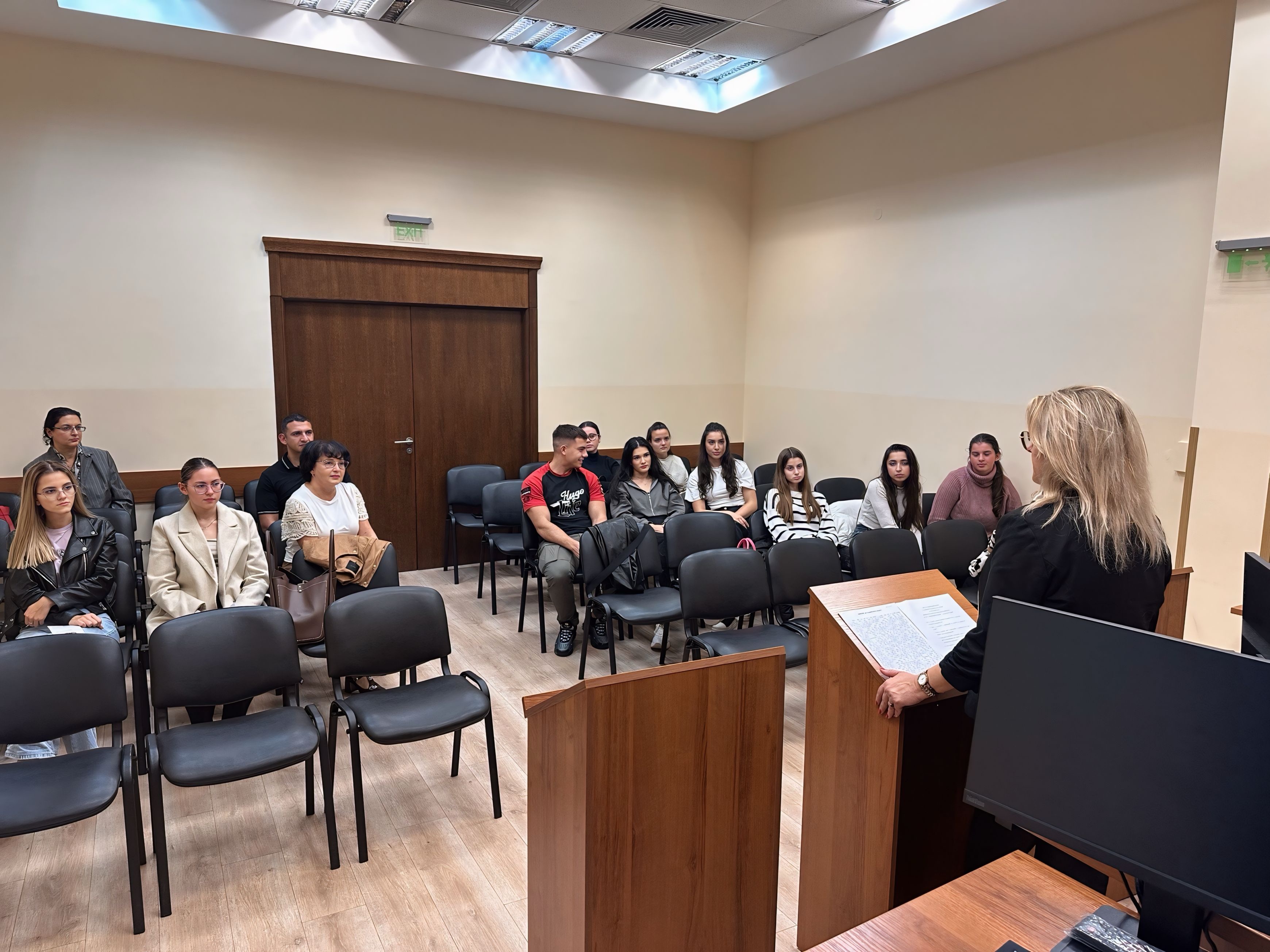 Студенти от четвърти курс, специалност „Съдебна администрация“ и трети курс „Публична администрация“ в Икономически Университет - Варна, участваха в симулативен конкурс за длъжността „съдебен деловодител“. Съдебният администратор Деница Станкова, ги запозна подробно с изискванията на обявения конкурс и представи членовете на изпитната комисия – Деяна Чолакова (съдебен деловодител) и Деница Кръстева (съдебен секретар). Четвъртокурсничката Надежда Йорданова се яви пред изпитната комисия в тричленен състав и показа добра мотивация за работа в съда. Представи богати познания за изискванията и основните задължения на деловодителя. Съдебните служители разкриха тънкостите в представянето на конкурс пред младежите. Студентите споделиха, че са добили знания за свои бъдещи участия в конкурсни процедури и благодариха за споделения опит. Сътрудничеството между Икономически университет – Варна и съда е дългогодишно и включва различни съвместни инициативи, подпомагащи образователната дейност на студентите изучаващи „Съдебна администрация.